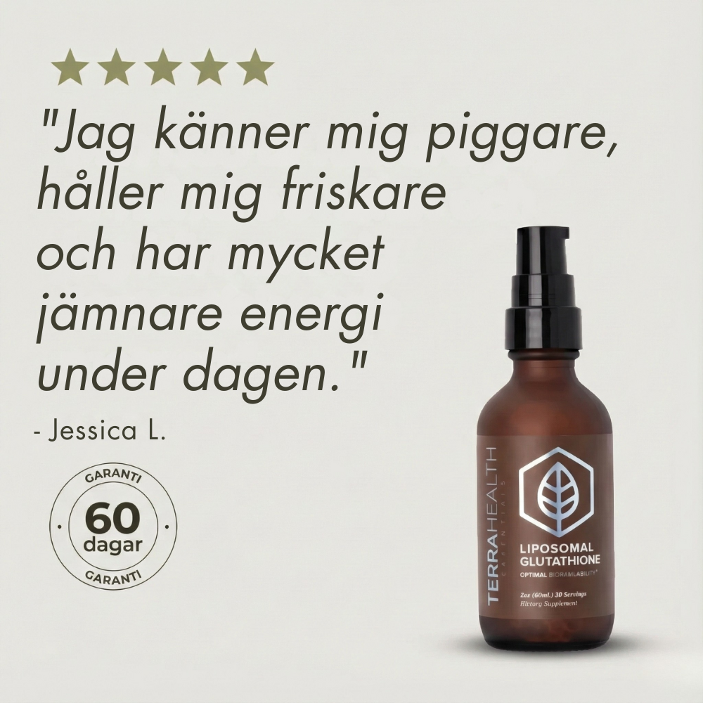 Den liposomala teknologin kapslar in glutation i fettpartiklar som skyddar den genom matsmältningen och transporterar den in i cellerna där den faktiskt behövs. Resultatet är betydligt bättre upptag och verklig effekt jämfört med vanlig glutation.
